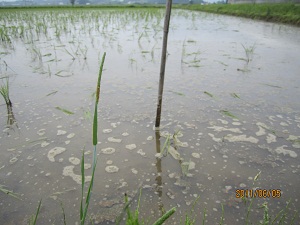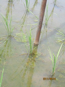 雑草対策で深水にしているので、生育が分かりずらいかもしれません。